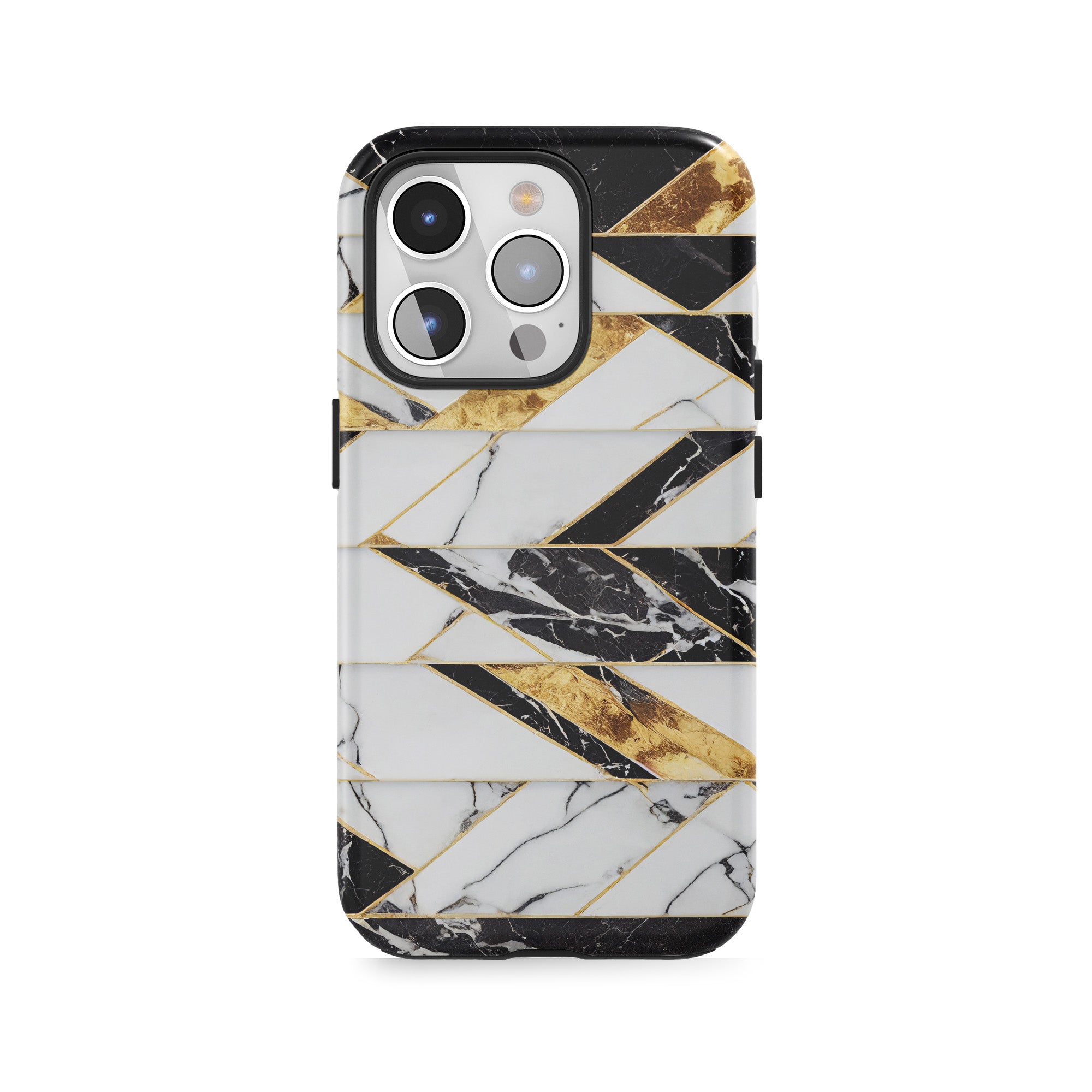 Chevron shapes in black marble and gold.